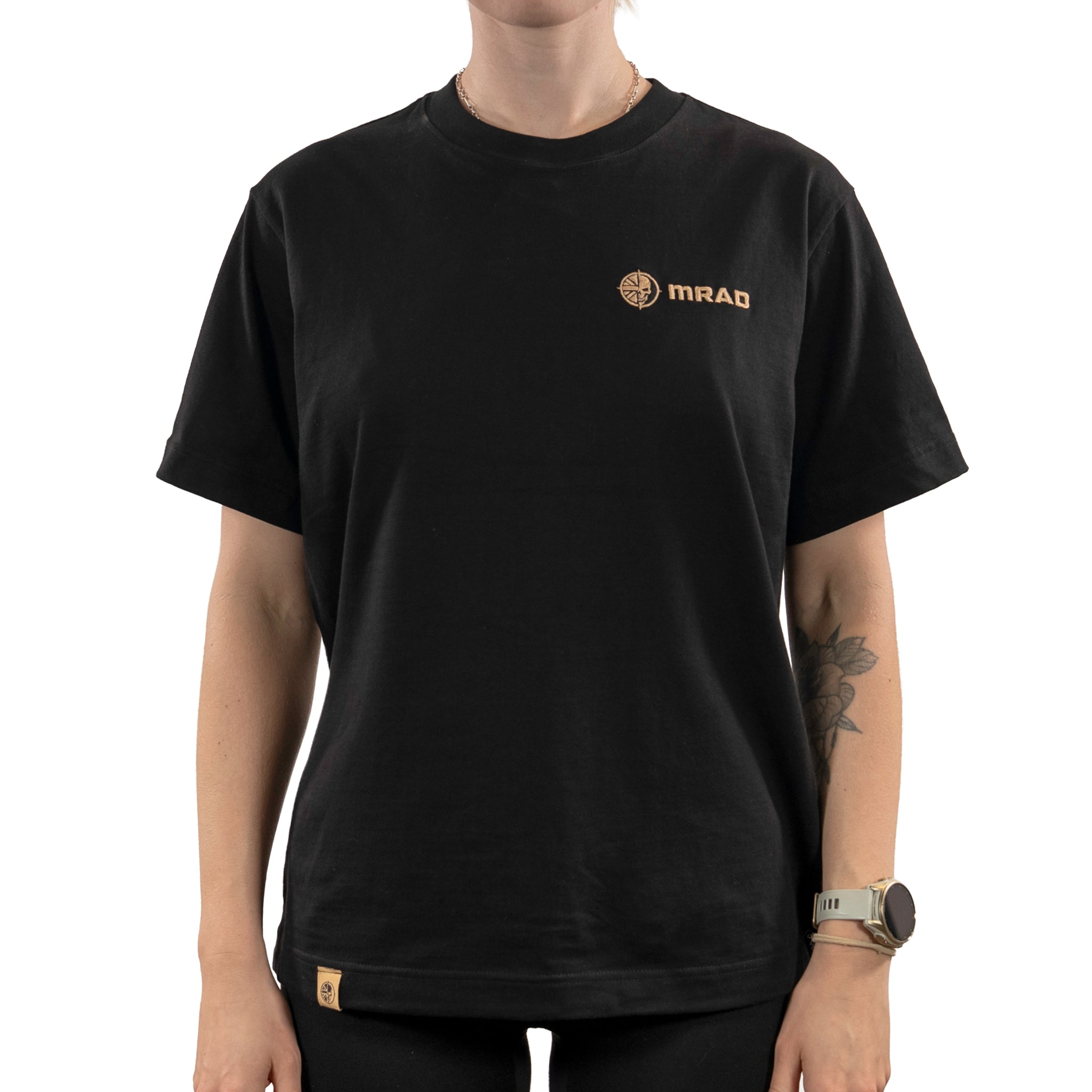 mRAD Logo Breast, plain T, large logo back.